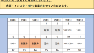 6月度の営業カレンダーになります 状況に応じ変更する場合があります 変更の際は 店頭・インスタ・HPで御連絡致します。
